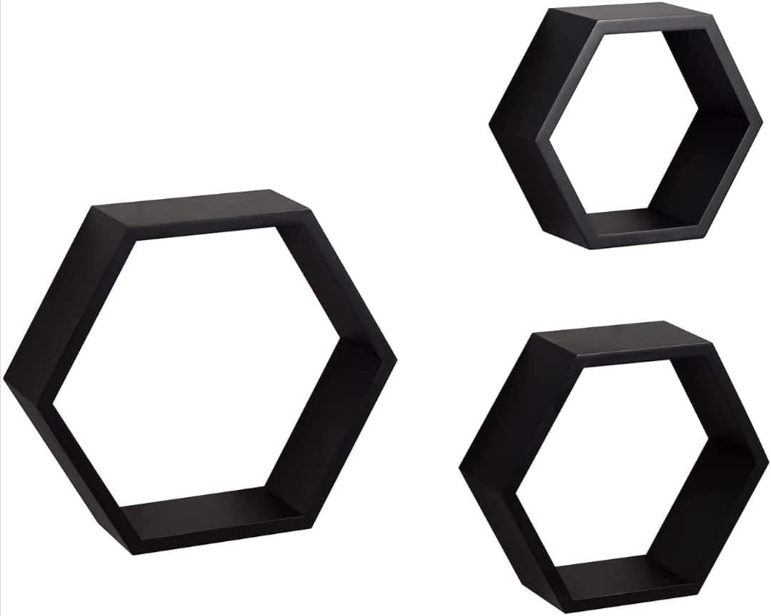 Wall Shelf – Set of 3 Pcs – Hexagon Shaped -Grey