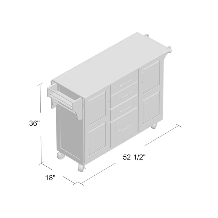 Other Dimensions | Countertop Thickness 1.9cm H, Height Without Wheels 85cm H, Countertop 109cm W X 45cm D, Drawer Interior – Large 22cm H, Drawer Interior – Small 8cm H |