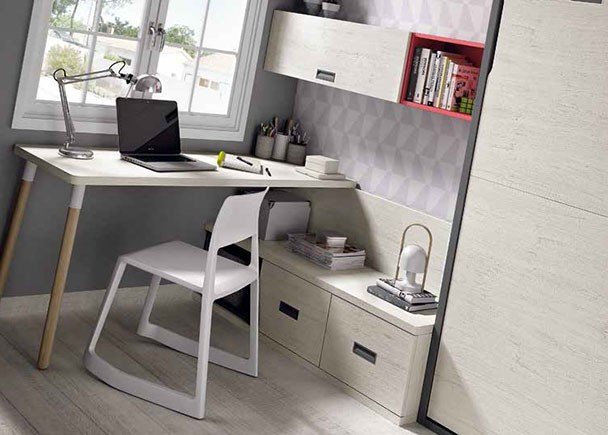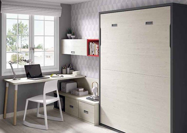 Youth bedroom, equipped with a vertical folding bed for mattresses