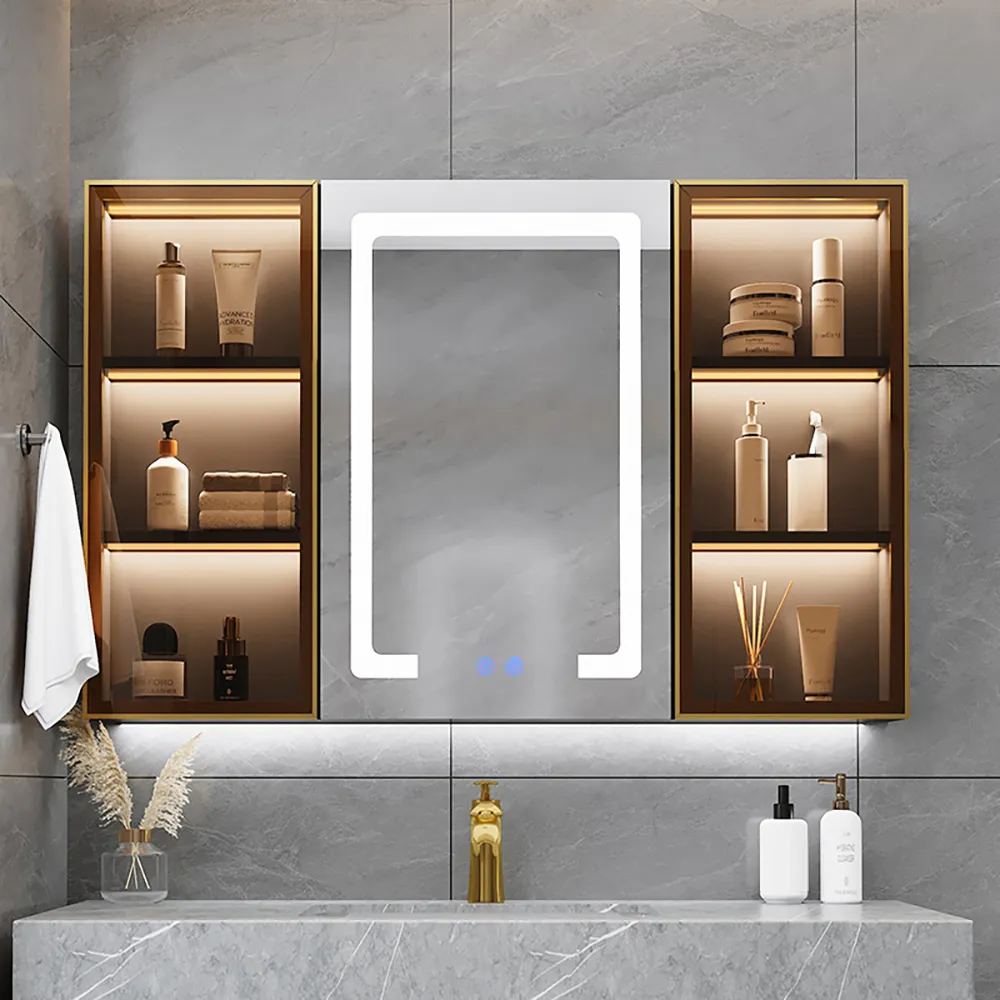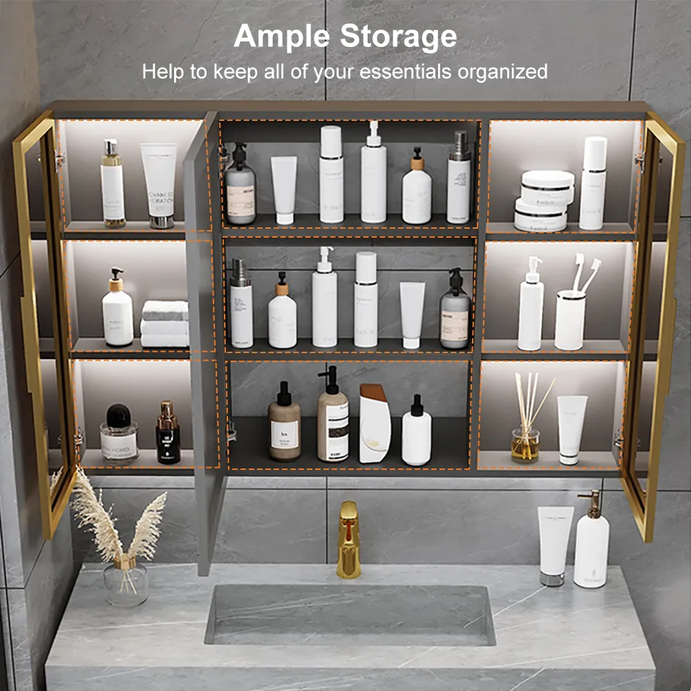 Get our bathroom cabinet with LED mirror, This sleek and modern cabinet features a built-in LED mirror for added convenience and style, as well as ample storage space for all of your toiletries and essentials.