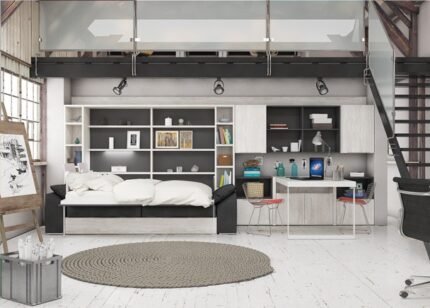 Living room with 90×190 vertical folding bed with drawer